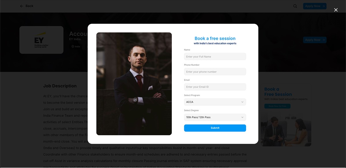 Plutus Education specializes in training students for globally recognized commerce certifications like ACCA, CFA, CMA, etc. As part of its growth strategy, Plutus wanted to capture organic leads by showcasing relevant job opportunities related to ACCA and commerce fields.