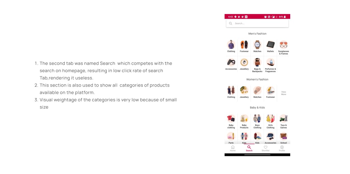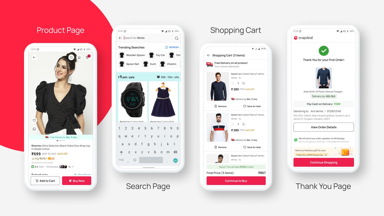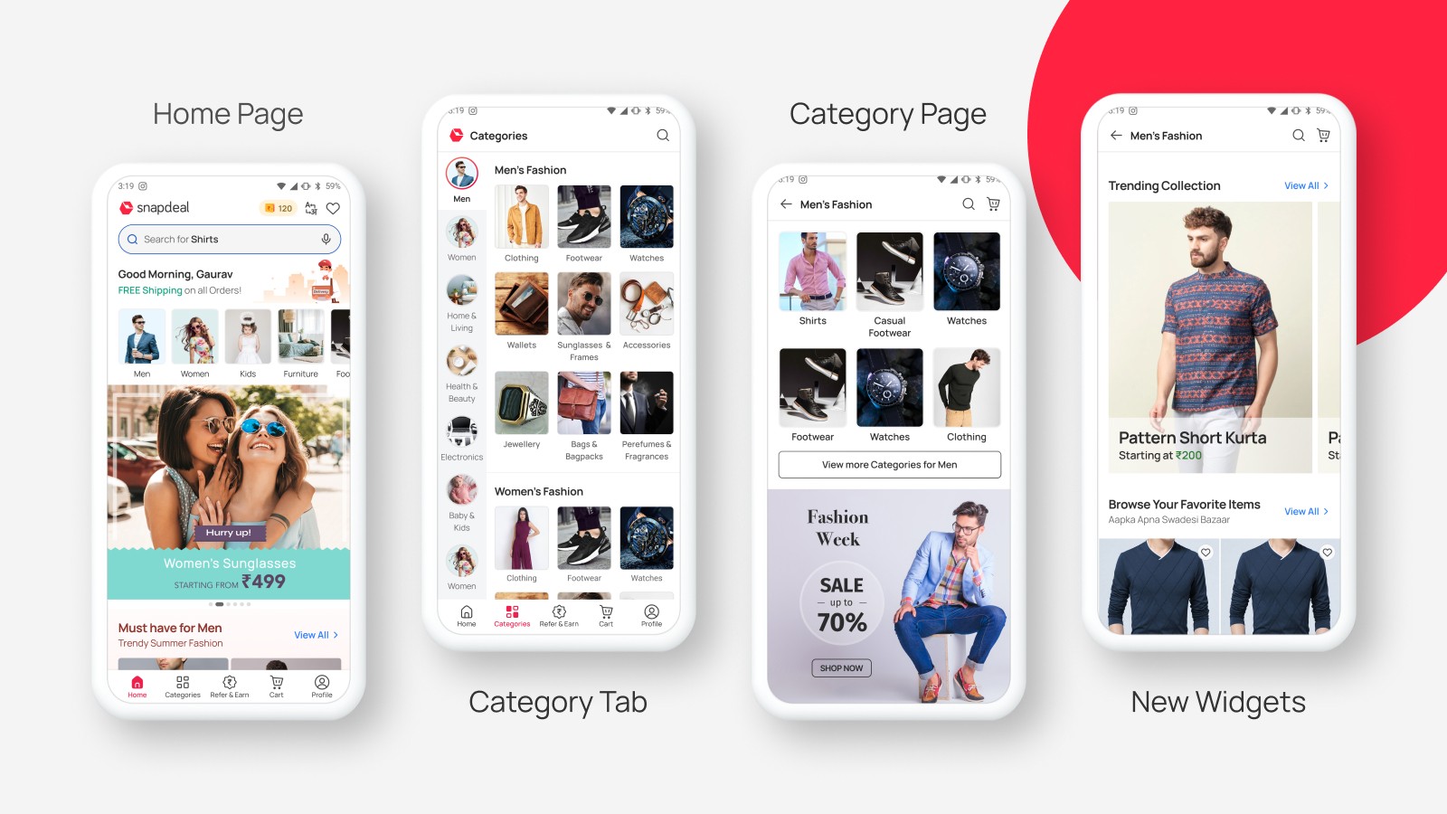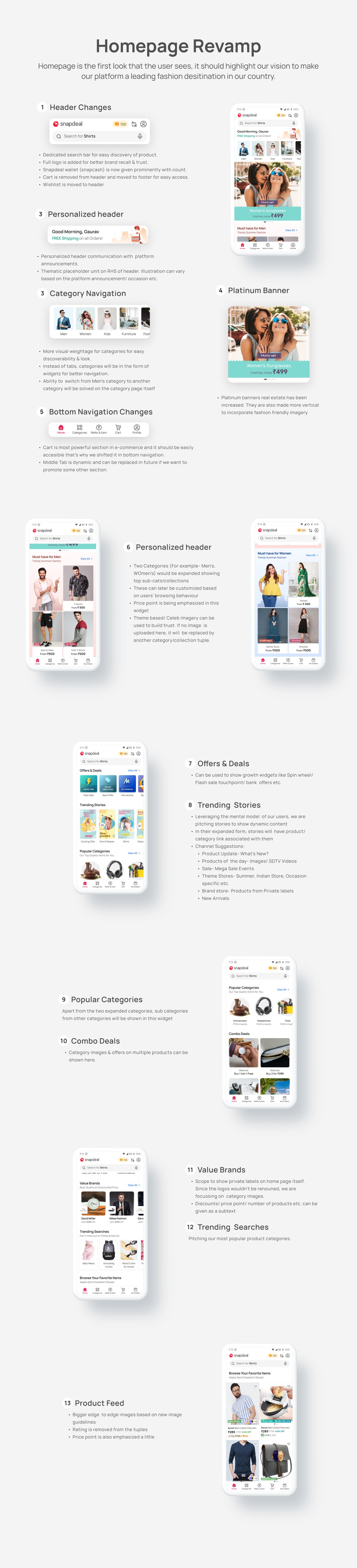 While Snapdeal had a massive customer base, feedback during user sessions highlighted key concerns: the app felt outdated, inconsistent, and not fashion-forward. There was a gap between the value-driven brand identity and how users experienced the app. Users struggled with friction in product discovery, inconsistencies in interface components, and an overall lack of visual hierarchy.