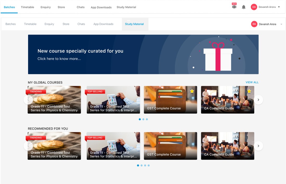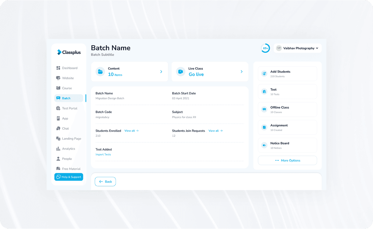 With Classplus 2.0, the aim of the team is to go for Product-Led-Growth i.e, Intuitive IA - Clear hierarchy to ensures smooth navigation, easy to find, easy to use featuresSelf-Education - Contextual Onboarding, feature education, help & support ( a “DIY” product)