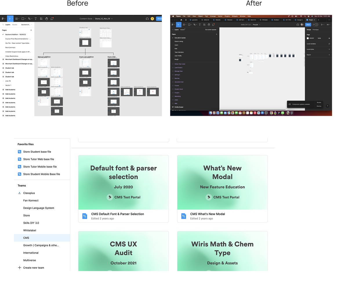 As the inconsistency was throughout the product, we’re needed to create a complete Design system for Classplus 2.0 at the very early stage to support scalability, consistency and re-usability. I took sessions on Auto-layout, Design system to create Design guidelines & learn best practises and brainstormed on approach - how to document, implement & maintain design system.